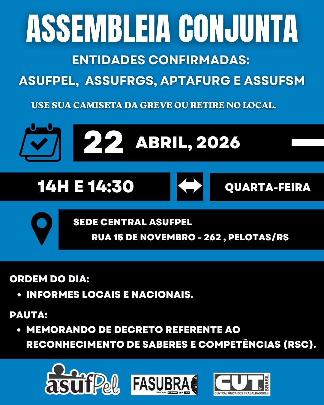 Neste vídeo a Coordenação do ASUFPEL-SINDICATO, Sidnei Tarouco, Mara Beatriz Gomes e Antonio Azambuja, faz um breve resumo sobre as deliberações da assembleia de greve do dia 18/06/24. Nela, a base da entidade deliberou por aceitar a última proposta do...